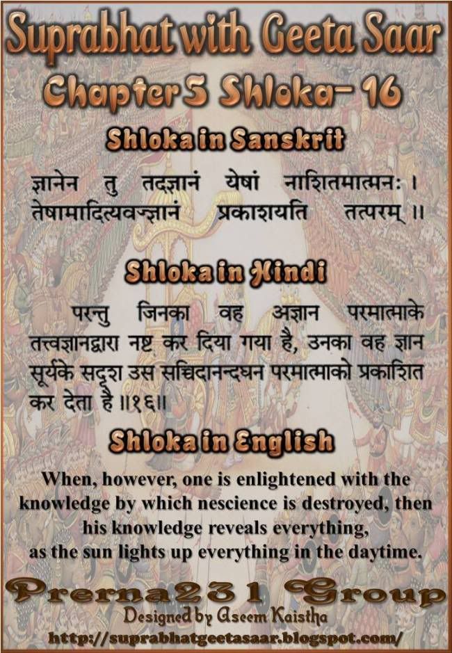 Suprabhat With Gita Saar on Facebook... - *Suprabhat with Gita Saar on Facebook* *The Bhagavad Gita simply known as Gita,* *is a 700-verse Hindu scripture that is part* *of the ancient Sanskrit epi...