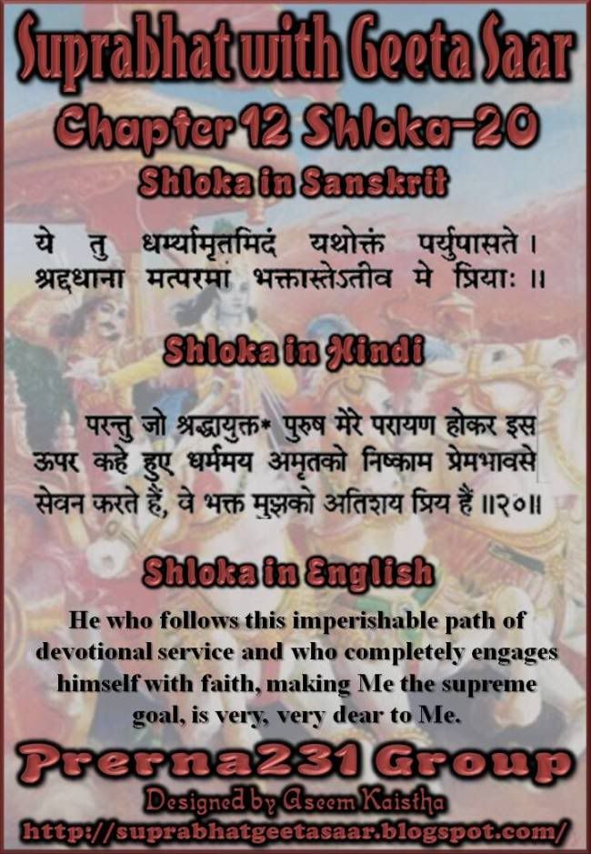 Suprabhat With Gita Saar on Facebook... - *Suprabhat with Gita Saar on Facebook* *The Bhagavad Gita simply known as Gita,* *is a 700-verse Hindu scripture that is part* *of the ancient Sanskrit epi...