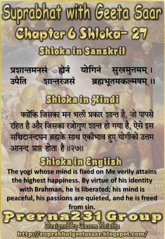 Suprabhat With Gita Saar on Facebook... - *Suprabhat with Gita Saar on Facebook* *The Bhagavad Gita simply known as Gita,* *is a 700-verse Hindu scripture that is part* *of the ancient Sanskrit epi...