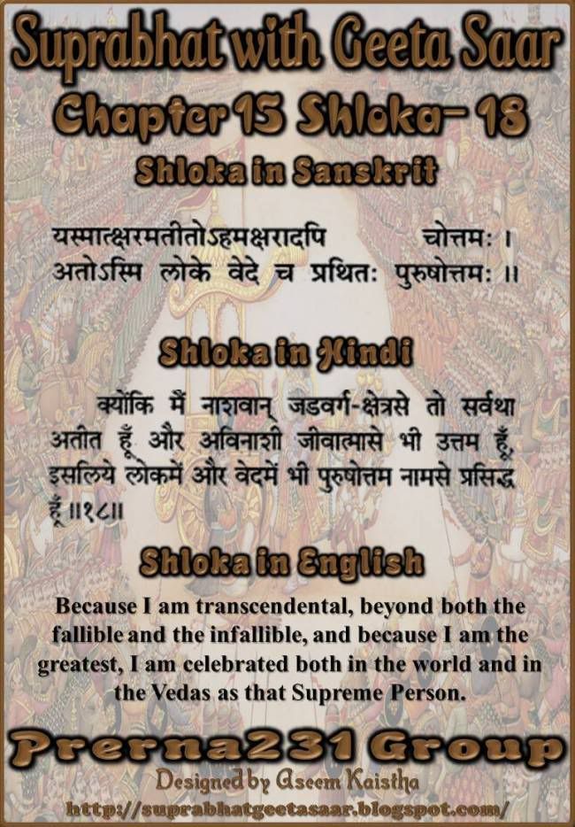 Suprabhat With Gita Saar on Facebook... - *Suprabhat with Gita Saar on Facebook* *The Bhagavad Gita simply known as Gita,* *is a 700-verse Hindu scripture that is part* *of the ancient Sanskrit epi...